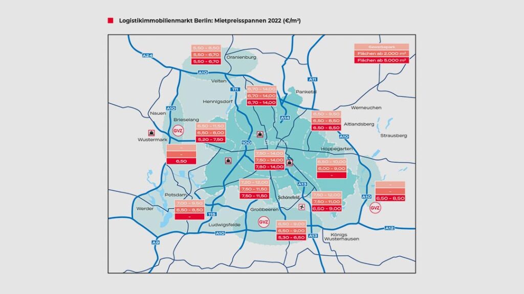 Der Berliner Markt für Lager-, Logistik- und Industrieimmobilien verzeichnete 2022 laut Realogis einen neuen Rekord. Die Marktteilnehmer übertrafen erstmals die 1-Million-Quadratmeter-Marke. Auch die Spitzenmieten sind weiter gestiegen.